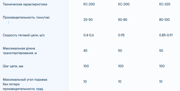 Тяговый орган — пластинчатая, закаленная цепь из углеродистой стали с разрывным усилием 16 400 кг. Каждый скребок цепи покрыт полимерной накладкой или обрезинен.